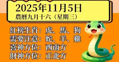 明日小運播報~2025 年 11 月 5 日(星期三)農曆九月十六