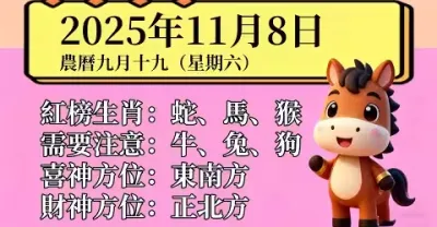 明日小運播報~2025 年 11 月 8 日(星期六)農曆九月十九