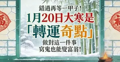 錯過再等一甲子!1月20日大寒是「轉運奇點」,做對這一件事,窮鬼也能變富翁!