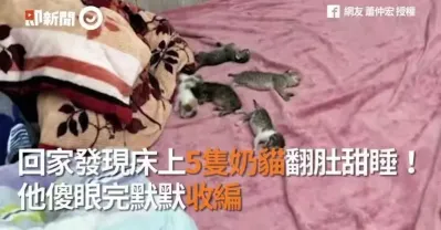 回家發現床上5隻奶貓翻肚甜睡!他傻眼完默默收編