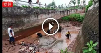 10幾年未乾過水的深溝估計有魚,不料抽干水之後,抓到的不是魚