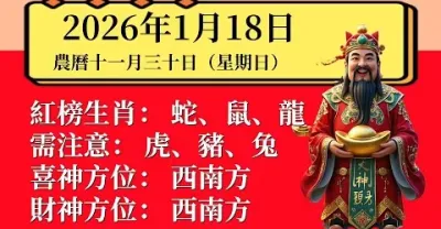 明日小運播報~2026年1月18日(星期日) 農曆十一月三十
