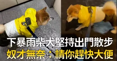 下暴雨柴犬堅持出門散步 奴才無奈:請你趕快大便