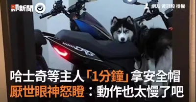 哈士奇等狗主人1分鐘拿安全帽 厭世眼神怒瞪:動作也太慢