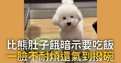 比熊肚子餓暗示要吃飯 一臉不耐煩還氣到撥碗