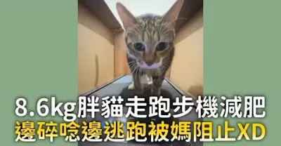 8.6kg胖貓走跑步機減肥 邊碎念邊逃跑被媽阻止XD