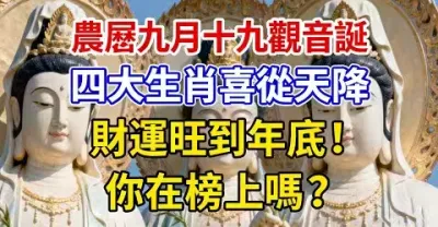 農曆九月十九觀音誕|四大生肖喜從天降,財運旺到年底!你在榜上嗎?
