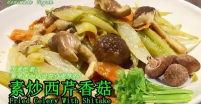 素食Vegan|西芹脆嫩有秘訣!自己家裡炒的西芹似乎總是有點老,而餐館裡的西芹卻永遠那麼脆嫩可口?《素炒西芹香菇 | Fried Celery With Shitake》