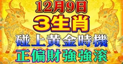 今日12月9日 3生肖 碰上黃金時機 正偏財強強滾