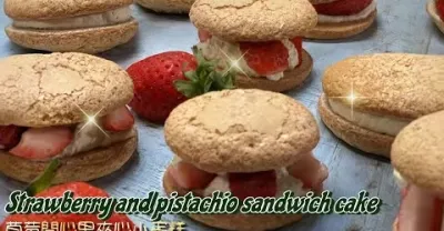Strawberry and pistachio sandwich cake 草莓開心果夾心小蛋糕 #草莓季 #100%開心果醬 #分蛋打發海綿蛋糕 #烘焙日常