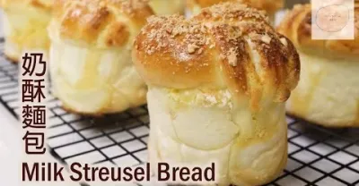 奶酥麵包 Milk Streusel Bread|新手容易操作|顏值高|奶香濃郁|柔軟又好吃|