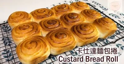卡仕達麵包卷Custard Bread Roll|湯種法|奶香濃郁|柔軟又好吃|