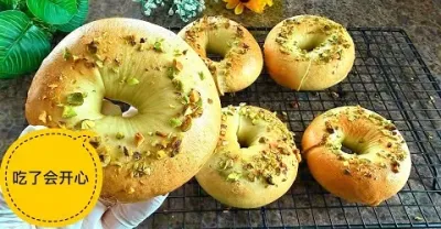 吃了會開心的【開心果乳酪貝果】6分鐘一次成功|Pistachio Cream Cheese Bagels recipe