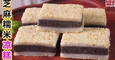 巨好吃的芝麻糯米小涼糕!口感軟糯拉絲,芝麻香超濃郁,做法非常簡單!Sesame glutinous rice cake。