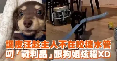 調皮臘腸狗趁主人不在咬壞水管 叼「戰利品」跟狗姐炫耀🤣