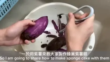 蜂巢紫薯糕|運用低溫發酵~睡覺前準備好 第二天就可以蒸了|新鮮紫薯製作|Recipe: How to make Purple Sweet Potato Sponge Cake |ENG SUB