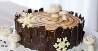 특별한 크리스마스 케이크를 찾으세요? 이 통나무 케이크를 만들어 보세요. / 버섯 쿠키 / Buche de Noel / Coffee Caramel Christmas Cake