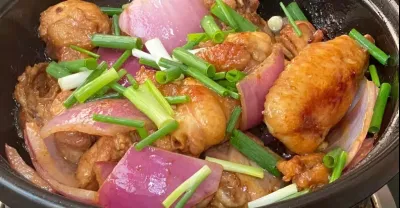 洋蔥焗雞肉越焗越香,出鍋香味撲鼻,再配點小酒太爽了