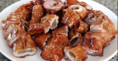 脆皮大腸的做法,出鍋皮脆肉香,色澤金黃,下飯下酒很不錯