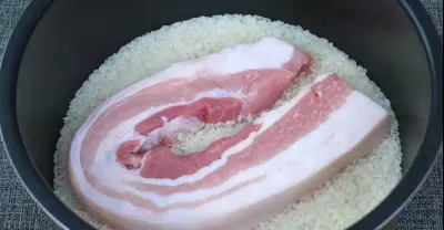 把五花肉放進大米里,太厲害了,老保姆拿手絕活,冬天就要這樣吃