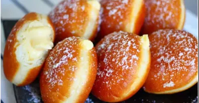 卡仕達奶油甜甜圈,一次發酵,不用機器無需烤箱,Custard Cream Donuts