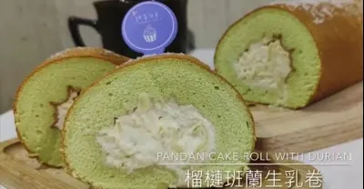 《甜食分子Y so sweet 》極邪惡下午茶!榴槤班蘭生乳卷Pandan cake roll with Durian