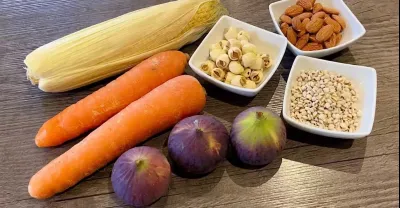 素湯《無花果紅蘿蔔粟米薏仁湯》無花果、紅蘿蔔和粟米加入果仁一起煮,可以清熱解毒、補充水份、開胃及增進食慾