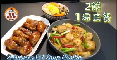 🎀家常便飯套餐|金銀菜乾湯|蝦仁燴豆腐|叉燒醬雞翼|Dried & Fresh Bok Choy Soup|Fried shrimp w/ tofu|Char siu chicken wings