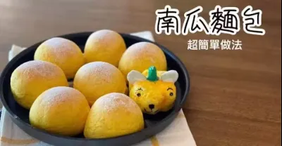 南瓜麵包 【超簡單10分鐘手揉方法】不用機器 都做到 鬆軟 好味的手工麵包 少糖少油食譜