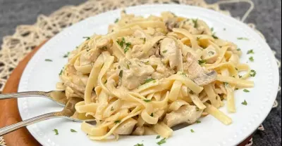 Schnell und einfach zuzubereiten. Alfregos Rezept mit Hühnchen und Fettuccine zum Abendessen.