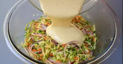 10 Minutes recipe! Pour batter into the zucchini, you'll be surprised by the result! So delicious!