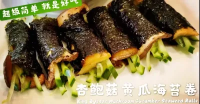 素食《杏鮑菇黃瓜海苔卷》做法超級簡單,無任何調味,口感清爽不油膩,就是好吃!