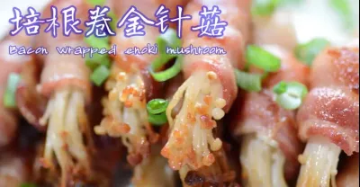 bacon wrapped enoki mushroom | 培根卷金針菇