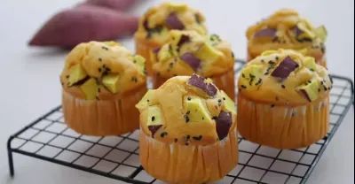 米粉でもふんわり♡絶品米粉のお芋マフィン | Rice flour sweet potato muffins