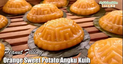 Orange Sweet Potato Angku Kuih (Peanut Filling) | MyKitchen101en