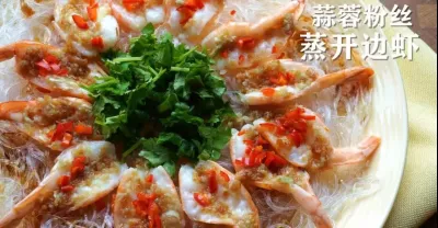 蒜蓉粉絲蒸開邊蝦,製作蒜蓉是關鍵,做法簡單,味道鮮美。