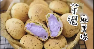 2分鐘學做芋泥麻薯球!外皮酥脆,內陷柔軟,甜蜜爆漿!