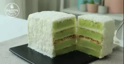 Amazing Cotton Soft Pandan Sponge Cake with Coconut Cream Frosting