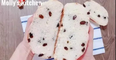 免揉奶香葡萄乾麵包 手不沾面最快速免揉脆皮麵包 準備只需5分鐘 No-knead milk raisin bread, super easy!