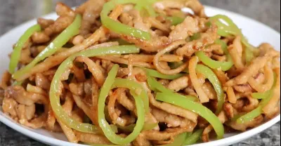 青椒炒肉絲加點魷魚更香,魷魚乾香肉絲滑嫩,夏天也能多吃兩碗飯