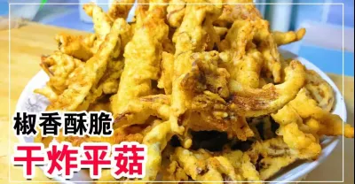 外酥里嫩的干炸平菇,味道比小酥肉還好吃,椒香酥脆,越嚼越香【客家妹秀秀】