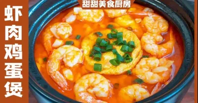 最近很火的蝦肉雞蛋,飯店賣98一鍋,在家成本不到10元,湯鮮肉嫩【甜甜美食廚房】