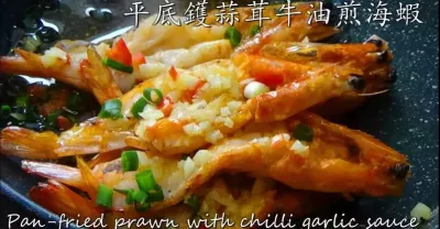 pan fried prawns/粵語 /大蝦/ 中字/ 平底鑊蒜茸牛油煎蝦//低成本/ pan fried prawns/ with chilli garlic sauce/cc subtitle