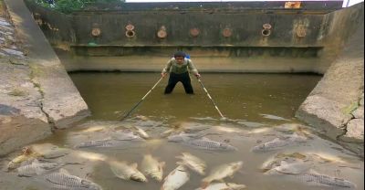 Wow ! Founding A Lot Fish Crab Snail Trying Jumping & Climbing From The Rice Fields To The Lake