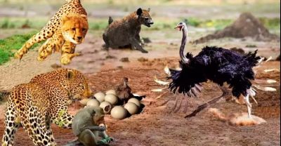 The Lion And The Hyena Steal The Ostrich's Cub