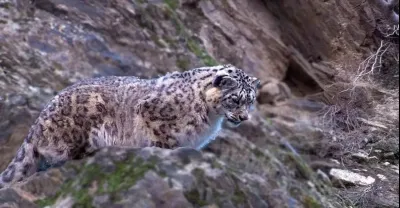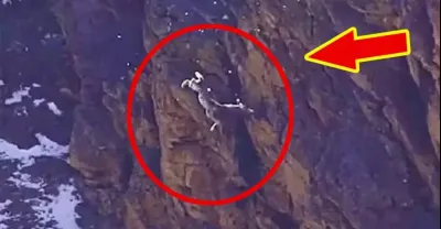 雪豹懸崖上追殺巖羊,一口咬中後雙雙墜落懸崖,鏡頭記錄了過程!