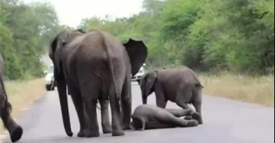 小象腿一蹬倒地不起,母象的處理方式「絕了」,鏡頭拍下搞笑一幕
