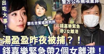 出咗大事!湯盈盈被捕,警方公布兩項重罪,罪名坐實或將判刑!錢嘉樂緊急帶2個女離港!