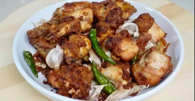 蒜米炸雞肉,金黃酥脆,鮮嫩多張,一口咬下去滿滿的蒜香味,好吃到停不下來 Garlic Fried Chicken is golden, crispy, tender and juicy