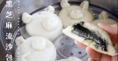 Black Sesame Lava Bun 超可愛的豬豬黑芝麻流沙包